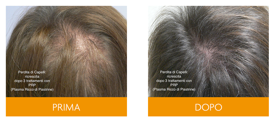 Perdita di Capelli: prima e ricrescita dopo 3 trattamenti con PRP.