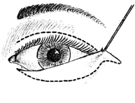 Le incisioni vengono tracciate a 1-2 mm al di sotto delle ciglia della palpebra inferiore; queste si estendono poi per alcuni millimetri oltre il canto esterno in una delle rughe della "zampa di gallina". Cosí facendo le cicatrici -che nei primi tempi talora sono notate come sottili linee arrossate- risultano difficilmente visibili, e il paziente sarà presentabile già dopo pochi giorni (Foto).